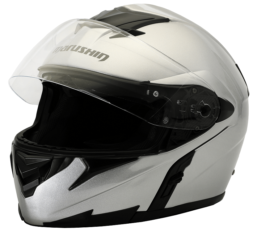 MATERIALI: Vetroresina ottimizzata dal punto di vista aerodinamico e composta da materie prime estremamente leggere e resistenti. VENTILAZIONE: Il nuovo design permette un ricircolo dell'aria ancora maggiore. Tutte le prese d'aria possono essere attivate e disattivate anche indossando i guanti. INTERNI:Le rifiniture Marushin-Cool regolano la temperatura, assorbono l'umiditˆ ed evitano la proliferazione di batteri e cattivi odori. I guanciali e i cuscinetti centrali possono essere rimossi e lavati. I nuovi guanciali permettono grande confort anche a velocitˆ elevate. Gli interni sono stati disegnati appositamente per permettere l'utilizzo degli occhiali senza incorrere in nessun fastidio. VISIERA: Chiara antigraffio, predisposta per il sistema Pinlock. Visiera antisole interna, la quale non genera nessun impatto negativo sulla sicurezza grazie anche all'assorbimento degli urti EPS. PESO: 1550 gr (+/- 50gr) CHIUSURA: Cinturino con chiusura a crick facilmente regolabile e semplice da utilizzare. OMOLOGAZIONE: ECE 22/05 MISURE: XS - 2XL COLORI: MONOCOLORE NERO OPACO - SILVER MET. CARATTERISTICHE: molto leggero, compatto. Facile da usare anche con occhiali. Pronto per intercom. Perfetto per gli amanti del Touring.Uno dei caschi modulari pi leggeri presenti sul mercato.
