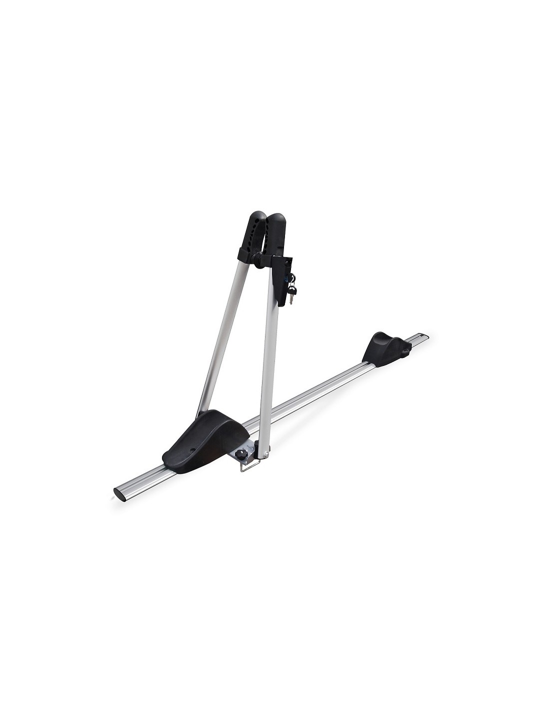 Portabici realizzato in alluminio dotato di chiusura antifurto e di poggiaruota per una maggiore stabilità. Fissaggio con cavallotti ad “U” da 60mm/2.3”.
